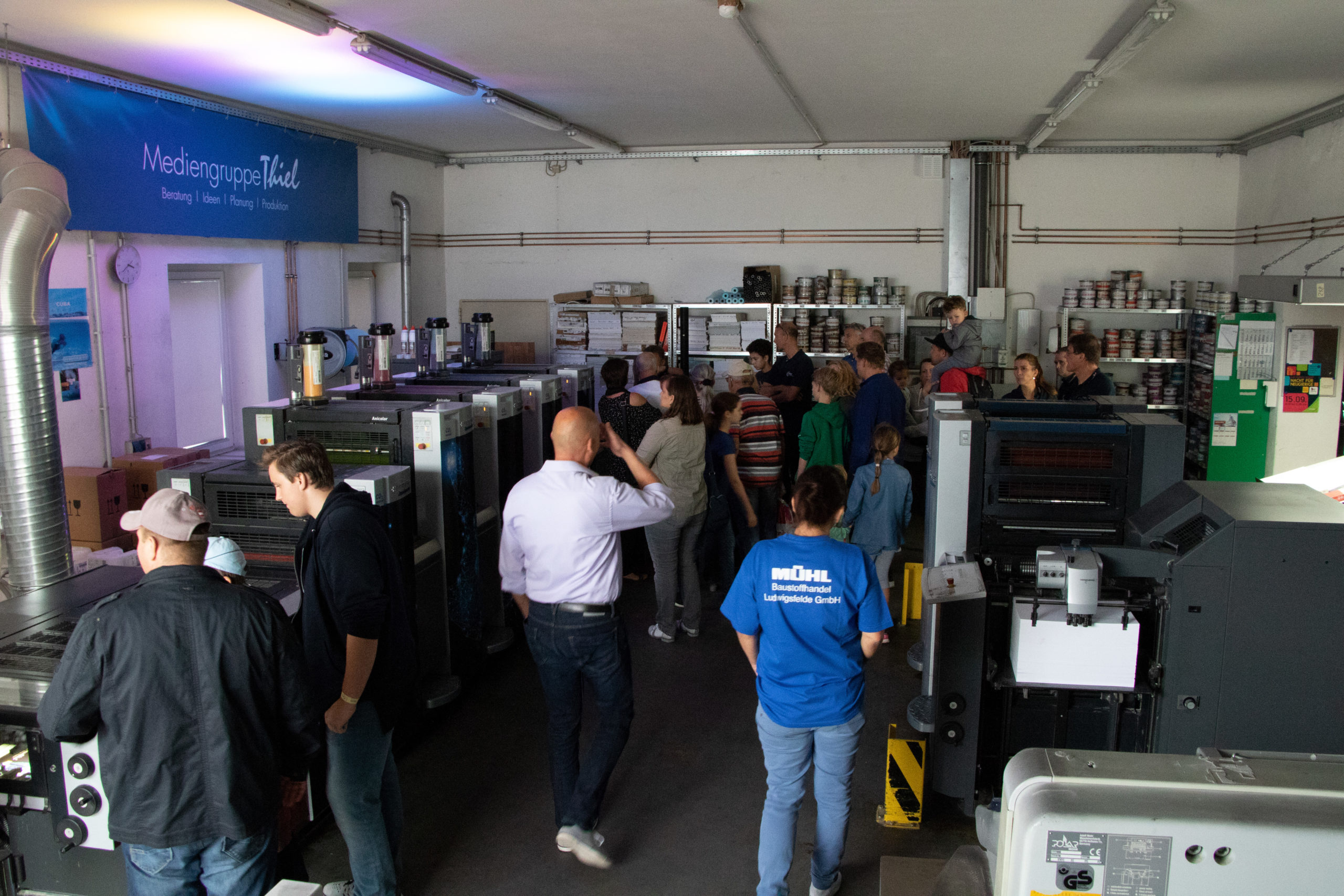 Am 15.09.2018 nahmen wir bereits zum dritten Mal an der „Nacht für Neugierige“ teil. Die Veranstaltung, welche durch die Stadt Ludwigsfelde organisiert wird, bietet allen ansäßigen Firmen die Möglichkeit sich auf ganz besondere Weise zu präsentieren. So konnte man in diesem Jahr erleben, wie unsere Druckmaschinen arbeiten, wie ein Auto foliert wird und Klatschpappen erstellt werden.