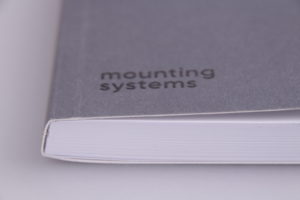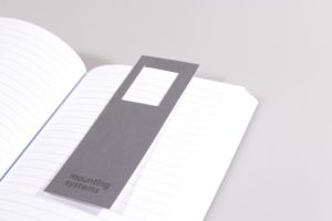 Im Fall der Mounting Systems GmbH erhielt das Notizbuch während der Herstellung noch ein paar kleine Besonderheiten, welche dem Endprodukt den letzten Schliff gaben. Hervorzuheben wäre hier der glänzende Reliefdruck auf der Umschlagseite und dem Lesezeichen, welches das Logo der Firma herausstellt. Der Umschlag ist außerdem mit der Folie „Soft Skin“ überzogen, um die haptische Wahrnehmung positiv zu gestalten.