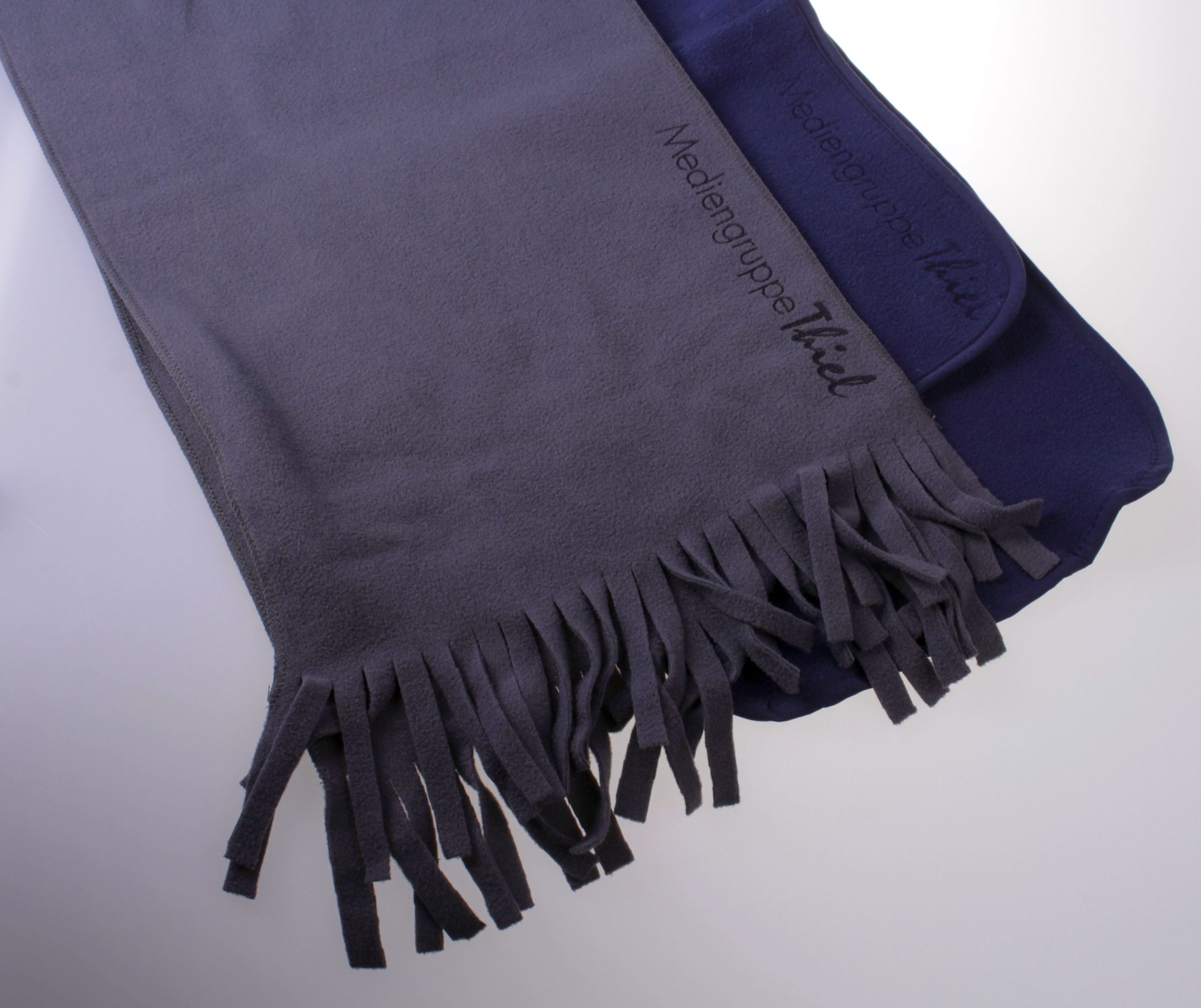 Passend zur kalten Jahreszeit empfiehlt sich ein leichter Fleeceschal. In diesem Fall wurde das Logo des Unternehmens mithilfe eines Lasers in den Schal gebrannt und bleibt dadurch dezent im Hintergrund.