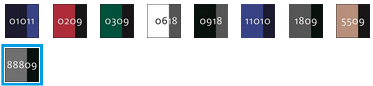 Farben: rot/schwarz, grün/schwarz, weiss/dunkelanthrazit, kornblau/schwarzblau, dunkelanthrazit/schwarz, hellkhaki/schwarz, schwarzblau/kornblau, anthrazit/schwarz
